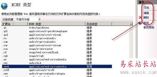 4.添加MIME類(lèi)型成功后,也可對(duì)各個(gè)MIME類(lèi)型進(jìn)行編輯和刪除。