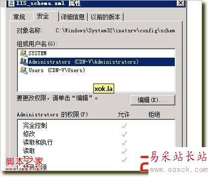 進入IIS_schema.xml文件權限修改,選擇”高級”