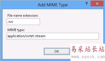 1. 首先添加MIME類型 擴展名“.svc”,MIME類型 “application/octet-stream”