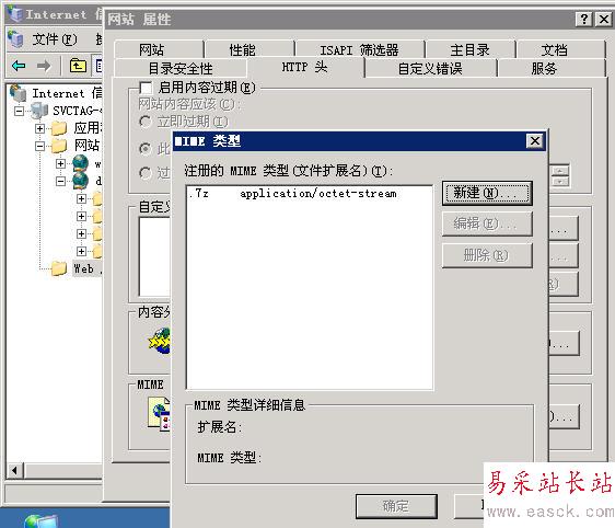 默讓情況下面,iis是不允許沒(méi)有注冊(cè)到IIS 的 MIME文件下載,IIS默認(rèn)支持哪些 MiME類型呢,我們可以在 IIS站點(diǎn)的屬性中看得到。