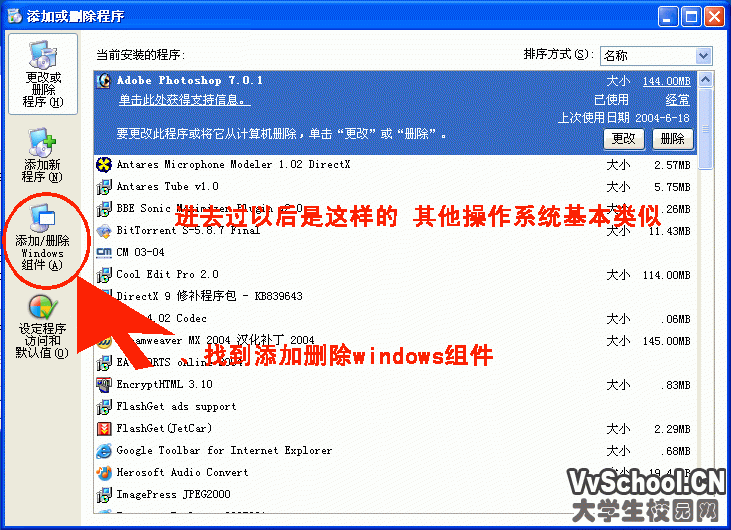 這一步可能出現:xp系統無法打開添加與刪除windows組件的情況,點擊這里解決。