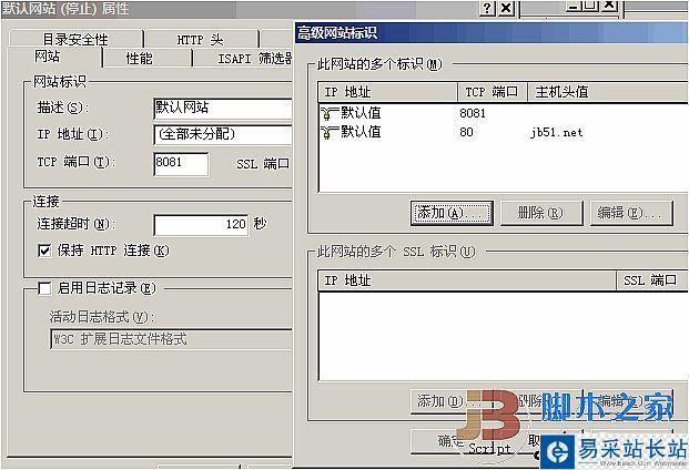 上面的圖說明了,我雖然修改了端口,但因為主機頭綁定了域名仍然使用的是80端口,所以不能使用,只要將綁定的域名端口修改一下,或刪除都可以解決。