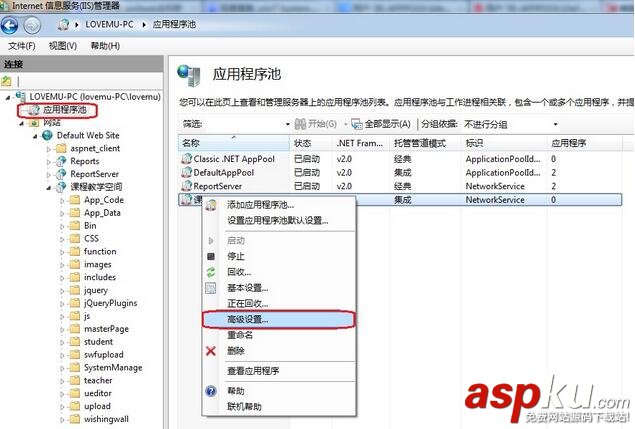 應(yīng)用程序池---對(duì)應(yīng)的程序池上右鍵---高級(jí)設(shè)置