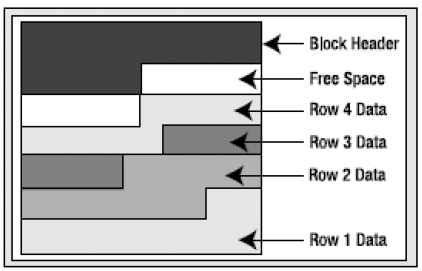 在一個新的塊保存了新的第四行數據,然后在原始塊保存了新地址的連接。這就是行遷移的過程。