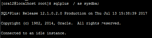 4.進入oracle控制臺。輸入命令: sqlplus  / as sysdba; 是以DBA身份連接到oracle