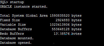 啟動數據庫,輸入命令: startup