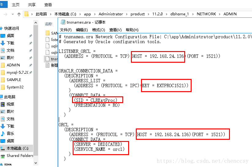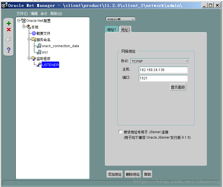 如果重新安裝虛擬機導致server地址變動,listerner.ora 和 tnsnames.ora 這部分資料要重新寫入到oracle的文件中。
