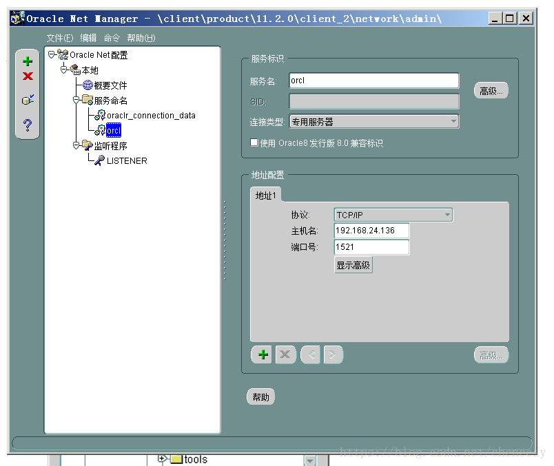 (主機上安裝好Oracle的客戶端, 然后)檢查主機配置 net manager信息。