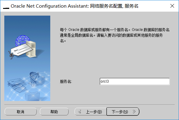 3.輸入服務(wù)名(例如:orcl3即服務(wù)器數(shù)據(jù)庫名)