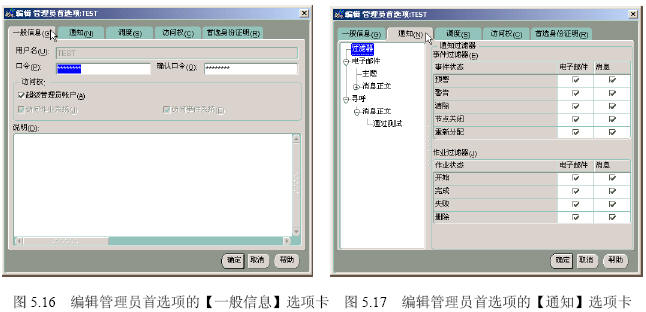 (3)圖5.17所示為編輯管理員首選項的【通知】選項卡。