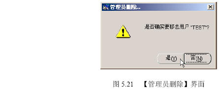 (2)出現如圖5.21所示的【管理員刪除】界面,單擊“是”按鈕。