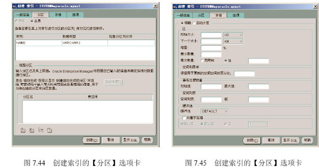 (3)切換到圖7.44所示的創(chuàng)建索引的【分區(qū)】選項(xiàng)卡。