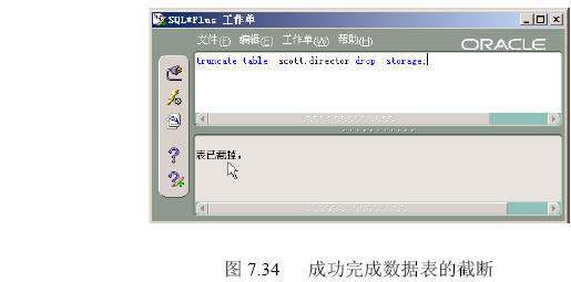 (4)重新在【sqlplus worksheet】中執行truncatedirector.sql,結果如圖7.34所示。表明成功完成表的截斷。