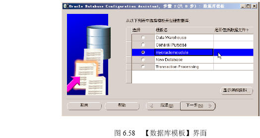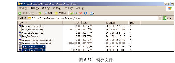 (3)調用【數據庫配置助手】創建數據庫,直到出現如圖6.58所示的【數據庫模板】界面。在模板文件目錄下有的模板將出現在列表框中。