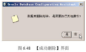 (5)成功刪除數據庫后出現如圖6.48所示的【成功境拷緱妗5セ鰲胺瘛卑磁ァ?br>