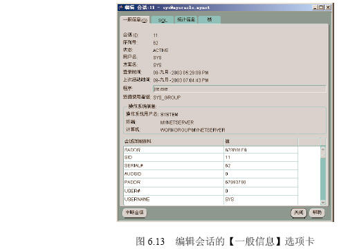 (7)圖6.15所示為編輯會話的【統計信息】選項卡。