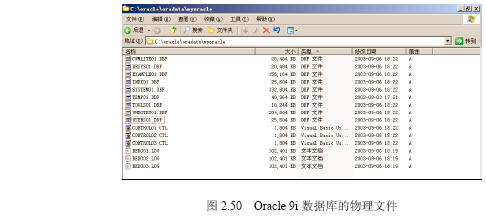以筆者的安裝環境為例,【全局數據庫名】為“myoracle.mynet”的數據庫的主要物理文件存放在c:/oracle/oradata/myoracle下,如圖2.50所示。