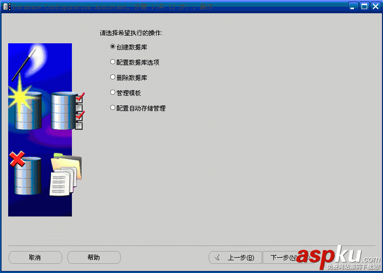 (2)單擊“下一步”按鈕,出現“操作”窗口,并選擇“創建數據庫”,如圖2: