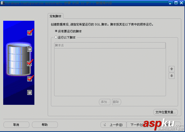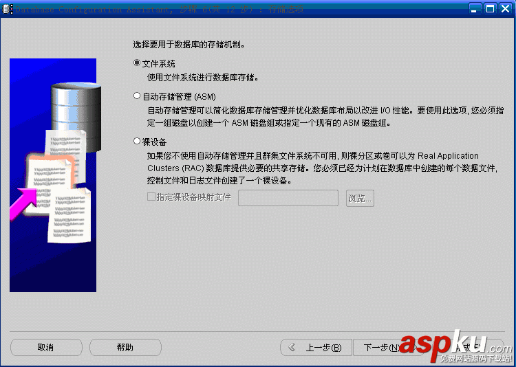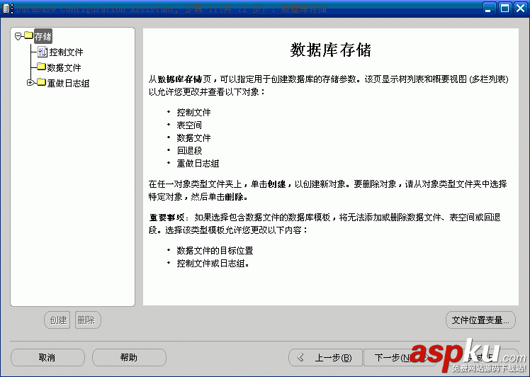 (12)單擊“下一步”按鈕,出現“數據庫存儲”窗口,如圖12: