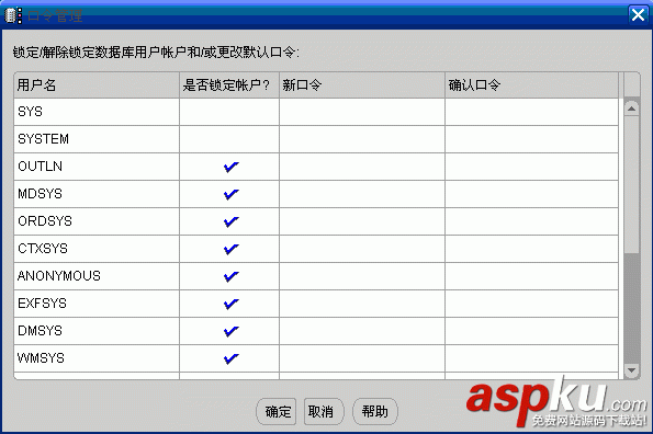 在圖17中,可以給賬戶接觸鎖定,設置新密碼。為了安全起見,在此應該更改默認DBA賬戶(如SYS、SYSTEM)的口令,并且鎖定所有暫時不需要的默認賬戶。