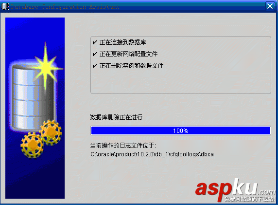 (5)單擊“是”按鈕,出現自動刪除數據庫的過程窗口,如圖22: