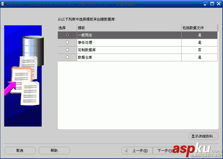 (3)單擊“下一步”按鈕,出現“數據庫模板”窗口,如圖3: