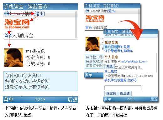3. 眾所周知,用戶在操作鍵盤機的時候,在達到目標鏈接之前,基本都需要進行多次焦點移動的操作。而觸屏機則沒有這種限制,用戶的操作大多不再受物理按鍵的局限,更多是受到視覺感官的支配,換句話說就是看哪點到哪。這時需要注意的是,因為失去了“焦點”的提示,我們必須對可點擊的鏈接和不可點擊的文字進行明確的視覺區分。