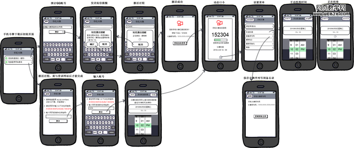 令牌在初期規劃時,設計師利用了草圖設計軟件mockups,設計了低保真交互原型初稿,快速搭建使用流程并與產品討論修改,流程界面如下圖: