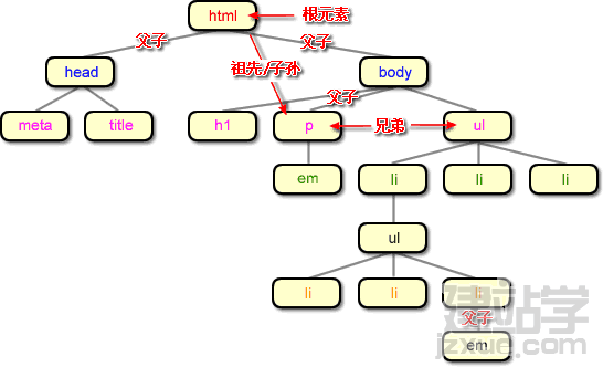 css大部分能力是基于元素的“父子”關(guān)系,在圖2的家族樹中,每個元素都是另一個元素的“父”或者“子”或者2者都是。例如:body既是html的子元素,又是h1的父元素,而html就是h1的祖先,h1則是html的子孫。
