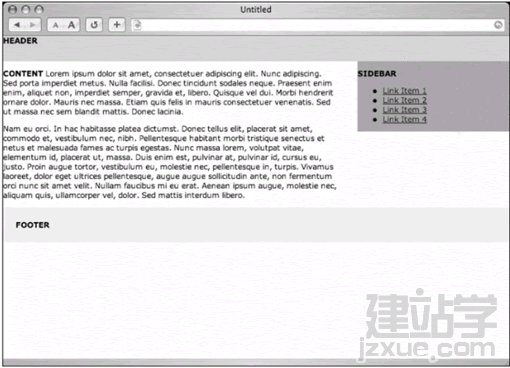 浮動#sidebar的關鍵在于,在標記源代碼中,必須出現在主內容<div>之前,這樣一來,側邊欄的頂部就會與主內容的頂部排齊.