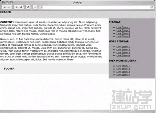 你有留意我們稍微修正了寬度以容納第三欄嗎?由于我們使用百分比,因此這個布局會隨著瀏覽器的寬度縮放,或者也可以為任何一欄指定像素寬度,以便使布局寬度固定下來.