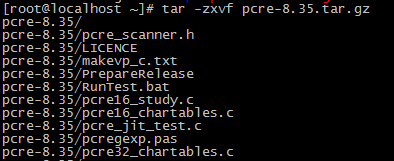 3、解壓pcre安裝包:tar -zxvf pcre-8.35.tar.gz