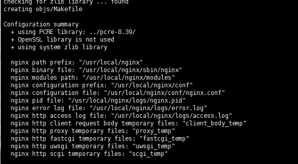 ./configure --prefix=/usr/local/nginx(安裝目錄) --with-pcre=../pcre-8.39/(pcre相對目錄)
