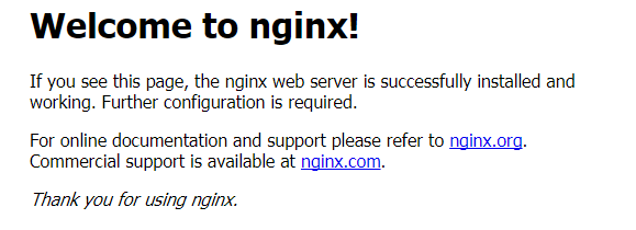 訪問瀏覽器,出現上圖界面,則表示nginx已經安裝完成了。