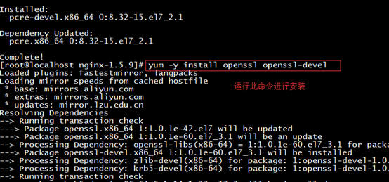 yum -y install pcre-develyum -y install openssl openssl-devel