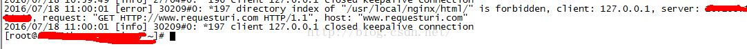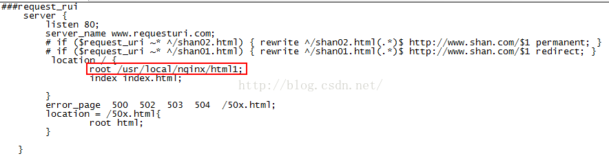 1、www.requesturi.com配置如下:發(fā)現(xiàn)root目錄與error日志中的禁止訪問的文件不一致,理論上訪問www.requesturi.com應(yīng)該到/usr/local/nginx/html1去查找,為何顯示的確是/usr/local/nginx/html禁止訪問?