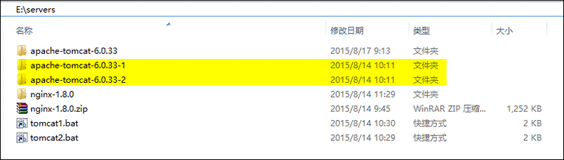 2、然后解壓兩個Tomcat,分別命名為apache-tomcat-6.0.33-1和apache-tomcat-6.0.33-2: