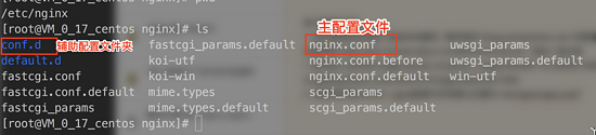 # For more information on configuration, see:# * Official English Documentation: http://nginx.org/en/docs/# * Official Russian Documentation: http://nginx.org/ru/docs/user nginx;worker_processes auto;error_log /var/log/nginx/error.log;pid /run/nginx.pid;# Load dynamic modules. See /usr/share/nginx/README.dynamic.include /usr/share/nginx/modules/*.conf;events { worker_connections 1024;}http { log_format main '$remote_addr - $remote_user [$time_local] "$request" ' '$status $body_bytes_sent "$http_referer" ' '"$http_user_agent" "$http_x_forwarded_for"'; access_log /var/log/nginx/access.log main; sendfile on; tcp_nopush on; tcp_nodelay on; keepalive_timeout 65; types_hash_max_size 2048; include /etc/nginx/mime.types; default_type application/octet-stream; include /etc/nginx/conf.d/*.conf;}注意上述配置文件的最后一行, include /etc/nginx/conf.d/*.conf; 保證了 /etc/nginx/conf.d/ 下,所有以.conf結尾的配置文件, 都會被主配置文件 nginx.conf 引入并生效