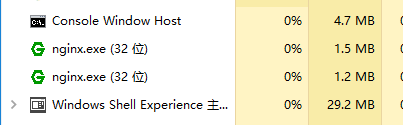 #user nobody;worker_processes 1;#error_log logs/error.log;#error_log logs/error.log notice;#error_log logs/error.log info;#pid logs/nginx.pid;events {worker_connections 1024;}http {include mime.types;default_type application/octet-stream;#log_format main '$remote_addr - $remote_user [$time_local] "$request" '# '$status $body_bytes_sent "$http_referer" '# '"$http_user_agent" "$http_x_forwarded_for"';#access_log logs/access.log main;sendfile on;#tcp_nopush on;#keepalive_timeout 0;keepalive_timeout 65;#gzip on;server {listen 8089;server_name localhost;#charset utf-8;#access_log logs/host.access.log main;#添加博客的代碼location ~ .*/.(gif|jpg|jpeg|png)$ { expires 24h; root G:/images/;#指定圖片存放路徑 access_log G:/images/log;#圖片路徑 proxy_store on; proxy_store_access user:rw group:rw all:rw; proxy_temp_path G:/images/;#圖片路徑 proxy_redirect off; proxy_set_header Host 127.0.0.1; proxy_set_header X-Real-IP $remote_addr; proxy_set_header X-Forwarded-For $proxy_add_x_forwarded_for; client_max_body_size 10m; client_body_buffer_size 1280k; proxy_connect_timeout 900; proxy_send_timeout 900; proxy_read_timeout 900; proxy_buffer_size 40k; proxy_buffers 40 320k; proxy_busy_buffers_size 640k; proxy_temp_file_write_size 640k; if ( !-e $request_filename) { proxy_pass http://169.254.140.133:8089; #代理訪問地址} } location / {root html;index index.html index.htm;}#error_page 404 /404.html;# redirect server error pages to the static page /50x.html#error_page 500 502 503 504 /50x.html;location = /50x.html {root html;}# proxy the PHP scripts to Apache listening on 127.0.0.1:80##location ~ /.php$ {# proxy_pass http://127.0.0.1;#}# pass the PHP scripts to FastCGI server listening on 127.0.0.1:9000##location ~ /.php$ {# root html;# fastcgi_pass 127.0.0.1:9000;# fastcgi_index index.php;# fastcgi_param SCRIPT_FILENAME /scripts$fastcgi_script_name;# include fastcgi_params;#}# deny access to .htaccess files, if Apache's document root# concurs with nginx's one##location ~ //.ht {# deny all;#}}# another virtual host using mix of IP-, name-, and port-based configuration##server {# listen 8000;# listen somename:8080;# server_name somename alias another.alias;# location / {# root html;# index index.html index.htm;# }#}# HTTPS server##server {# listen 443 ssl;# server_name localhost;# ssl_certificate cert.pem;# ssl_certificate_key cert.key;# ssl_session_cache shared:SSL:1m;# ssl_session_timeout 5m;# ssl_ciphers HIGH:!aNULL:!MD5;# ssl_prefer_server_ciphers on;# location / {# root html;# index index.html index.htm;# }#}}3.點擊綠色的nginx.exe圖標,啟動服務器,在任務管理器看到如下,則啟動成功