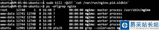 第二條命令是發送信號QUIT給舊的master進程,進程的pid存放在/var/run/nginx.pid.oldbin文件中,隨后舊的master進程退出。