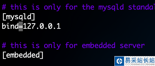 b. 在[mysqld]下面加上bind=127.0.0.1,如下圖所示