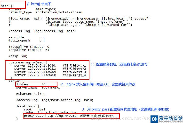server { listen 80; #默認是80,也可更改為其他的,當然已被占用的端口號不能寫。 ......}3:用proxy_pass配置反向代理地址