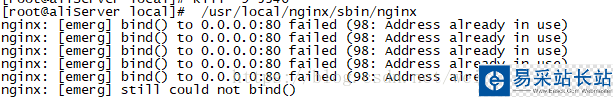 因為nginx之前安裝時就已經啟動了,現在再啟動就報錯端口號被占用