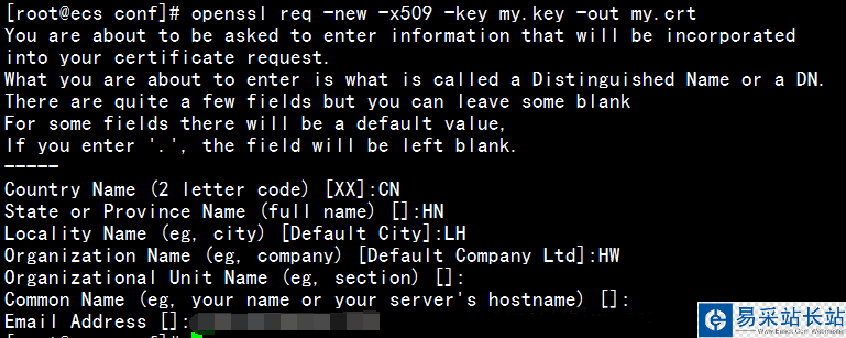 openssl req -new -x509 -key my.key -out my.crt #生成子簽名證書,相當于公鑰