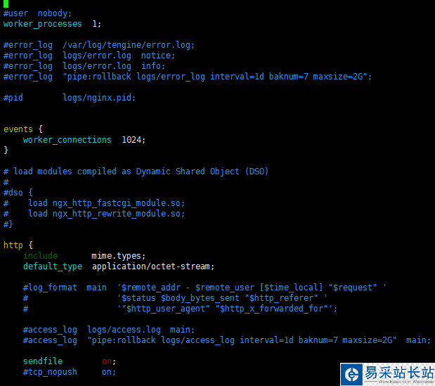 3.然后打開nginx.conf,果然有顏色了,呵呵。