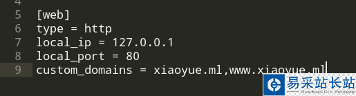 對(duì)應(yīng)穿透服務(wù)配置里配置好對(duì)應(yīng)域名,custom_domains = xiaoyue.ml