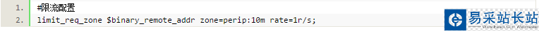 zone=perip: 表示 用 perip 這個 名稱 來標識 這行限流配置, 待會 會通過 perip 這個名稱來引用這行限流配置(也就是說限流配置是可以定義為多個的)