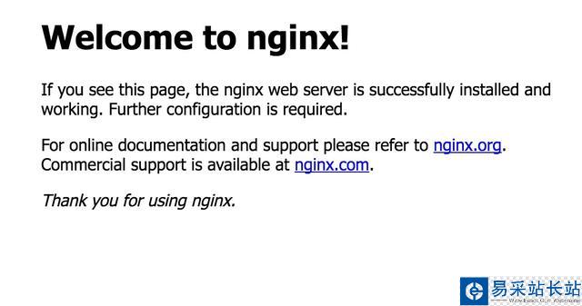 Nginx會默認安裝在/usr/local/nginx目錄,我們cd到/usr/local/nginx/sbin/目錄,存在一個Nginx二進制可執行文件。直接運行就可以啟動Nginx。運行成功后打開瀏覽器訪問此機器的IP,出現如下畫面即為成功。