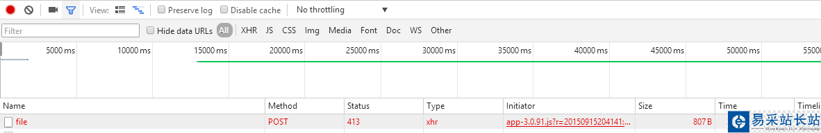 上傳文件的問題是在Windows桌面版本的Hipchat上發現的,不過因為與瀏覽器訪問的效果一致,我猜測后面一定是一個Web服務器,于是乎打開瀏覽器試著在聊天界面發送文件,果然是同樣的報錯,不過不同的是,我可以用現代瀏覽器的調試工具查看下請求的報錯內容,于是看到: