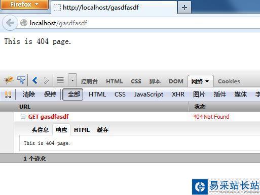 status值是404。既實現返回404頁面,又能返回404狀態碼讓ajax請求能夠根據狀態碼判斷頁面請求狀況進行錯誤處理。